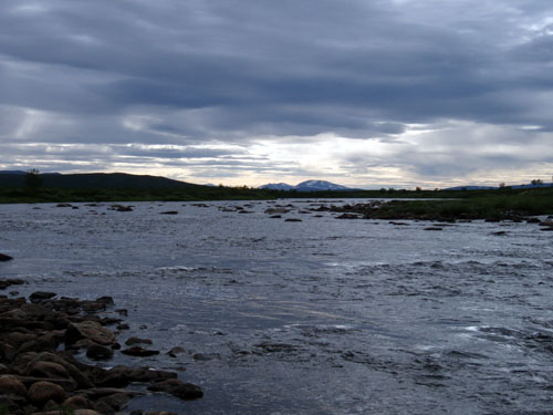 Vaimo tuli matkaan ja lupasin, että tällä kertaa ei sitten puskia vaan aukeeta. Taavaeno oli sopiva vaihtoehto tähän hätään. Kävelyä kohtuullisesti, maisemat hyvät ja kalaa sen verran, että saa paistettavaksi. Aloitus meni myöhään ja niinpä nukuimmekin ekan yön ihan auton vieressä. Toisena päivänä pääsimme sentään perille. Kalantulo oli heikompaa kuin edellisenä vuonna, mutta jotain tuli ylöskin. Lippa oli tehokkaampi ase tällä kertaa vähän yllättäinkin. En vaan tainnut löytää oikeaa perhoa. Laura onnistui jallittamaan ekan pinturiharrin, mikä ei ollut mikään itsestäänselvyys, kun pintomiset olivat tosi vähässä. Koko oli oikein nätit 42 senttiä. Tein vielä pitkän epätoivoisen kävelyn isojen harrien perässä. Ilma viileni ja kello oli yli puolen yön. Oli vähän utua, jyrkkä penkka, ja hiljaa virtaava suvanto. Siinä sitten istuskelin penkalla kyttäillen, missä kalat pintoo. Hallitsin useamman sadan metrin kaistaa ja kävin pariin kertaan heittelemässä, kun kalat antoivat aihetta. Kolme kertaa sain aina eri kalan nousemaan ja kolme kertaa vetäisin ohitse. Tosin kaksi kertaa kolisi leuoille. Söi miestä, kun ainakin kaksi näistä oli isoja. Syönti oli heikkoa ja satunnaiset tuulijaksot häiritsivät. Viimeisenä aamuna kalastelin jälleen kerran leirirantaa ja vetäisin yllärikalan pinturilla. 48 senttiä ja vain 890 grammaa. Paremmalla joella standardikala, mutta lämmittihän tuo nytkin.